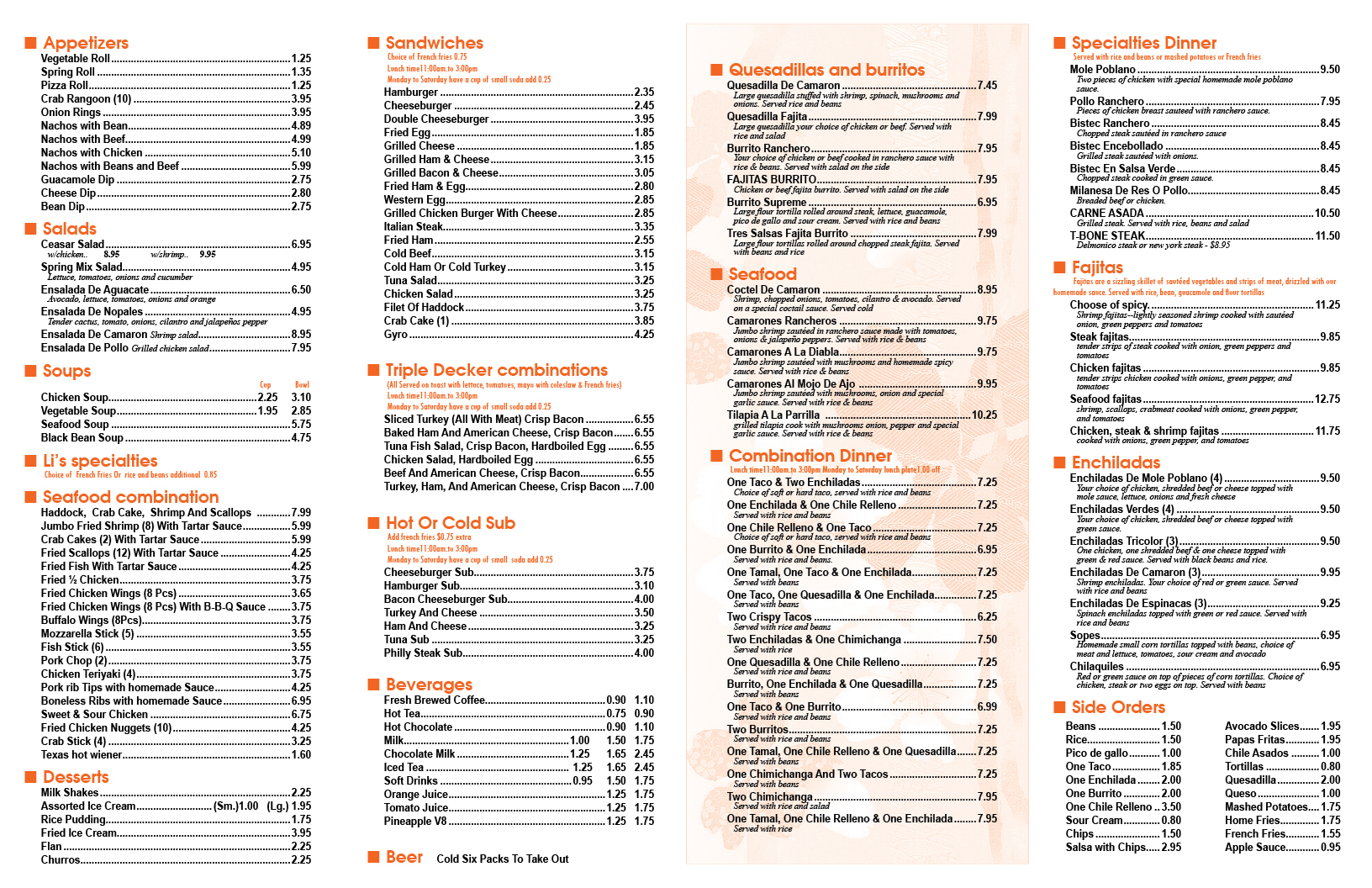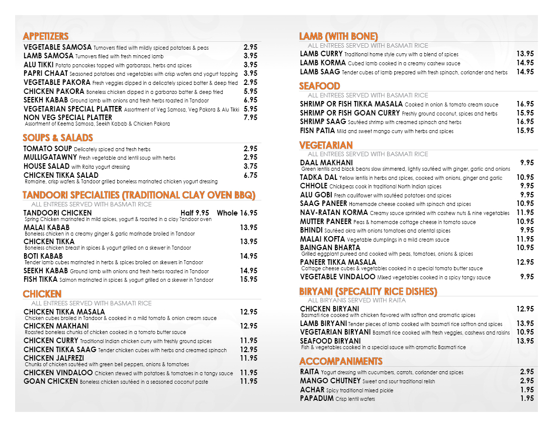Dine In Menus(堂吃菜单样品)